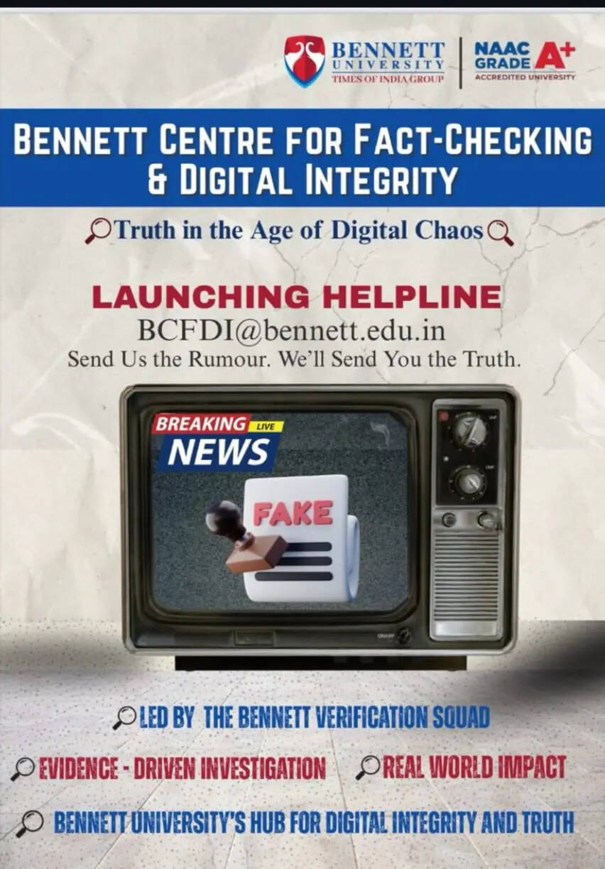 Bennett University’s Times School of Media has launched the Bennett Centre for Fact-Checking and Digital Integrity (BCFDI) to combat misinformation and promote media literacy. Led by Prof. (Dr.) Sumit Narula, the centre trains students in global-standard verification tools and empowers the Bennett Verification Squad to debunk rumours in real time. With a public helpline and plans for national outreach, BCFDI aims to uphold truth and strengthen digital integrity.Correspondent: Sampada Sharma