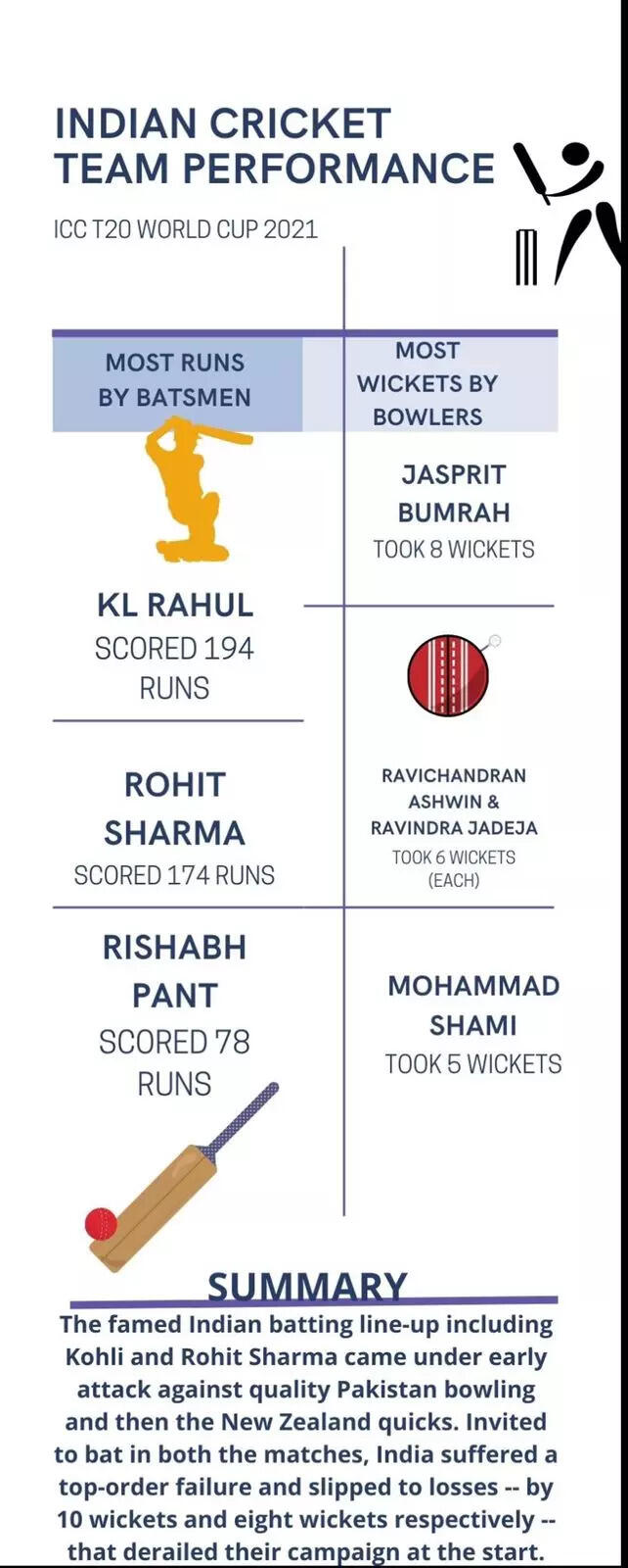 Poor selection, failed bowlers hit India hard at Cricket T20 World Cup as their performance got affected. Virat Kohli was sacked as the ODI skipper four months after India performed miserably at the UAE T20 World Cup under his command.