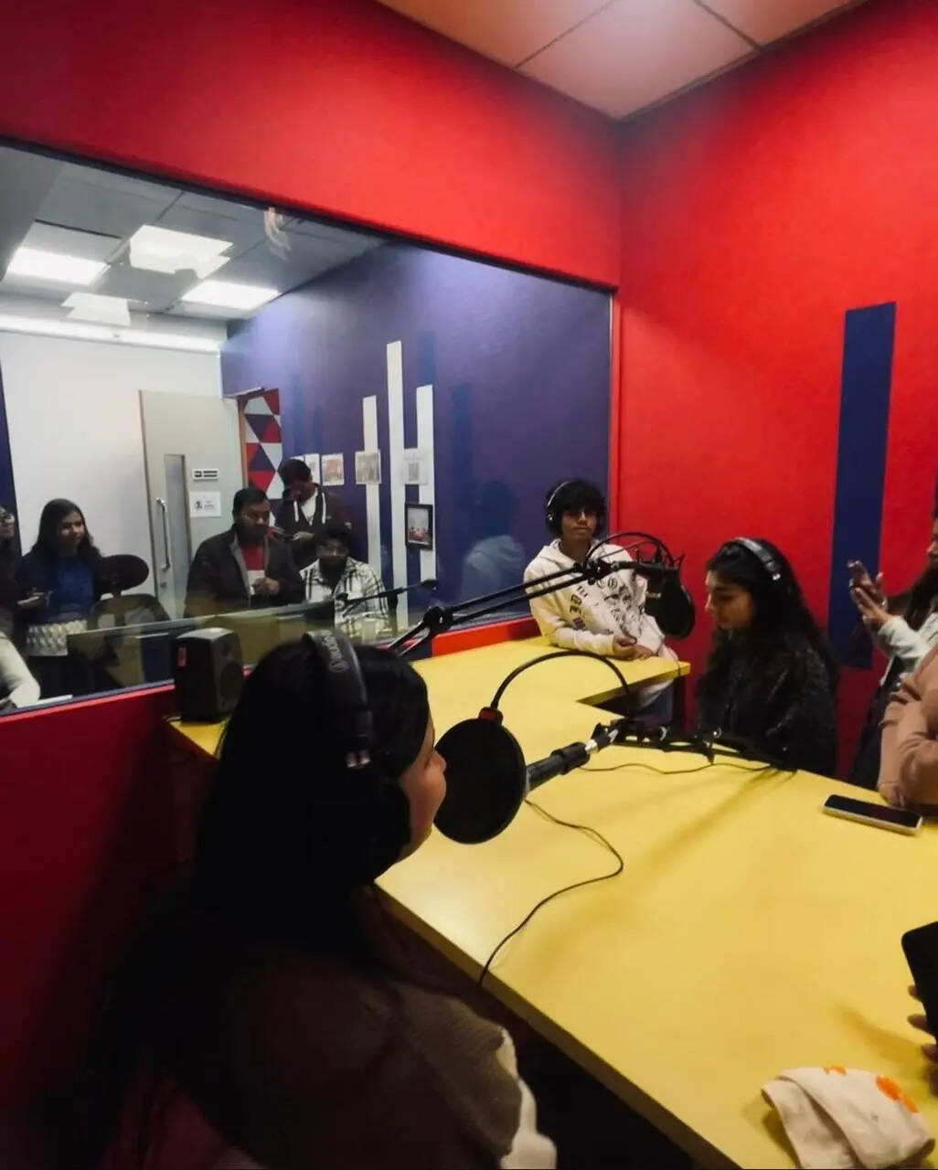 In a room full of mics and ideas, every voice matters. Capturing the behind-the-scenes of a podcast recording session, where students collaborate, communicate, and bring stories to life through audio.